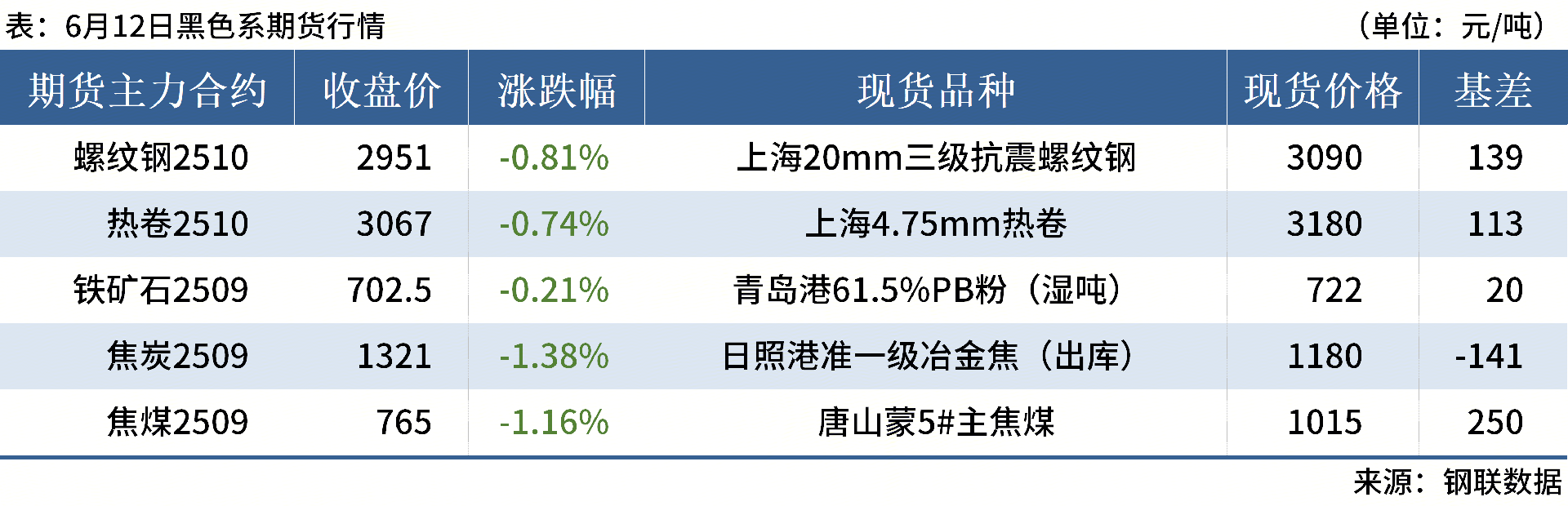◎ 6月12日,全國主港鐵礦石成交85.40萬噸,環(huán)比增8.5%;237家主流貿(mào)易商建筑鋼材成交8.92萬噸,環(huán)比減14.7%。