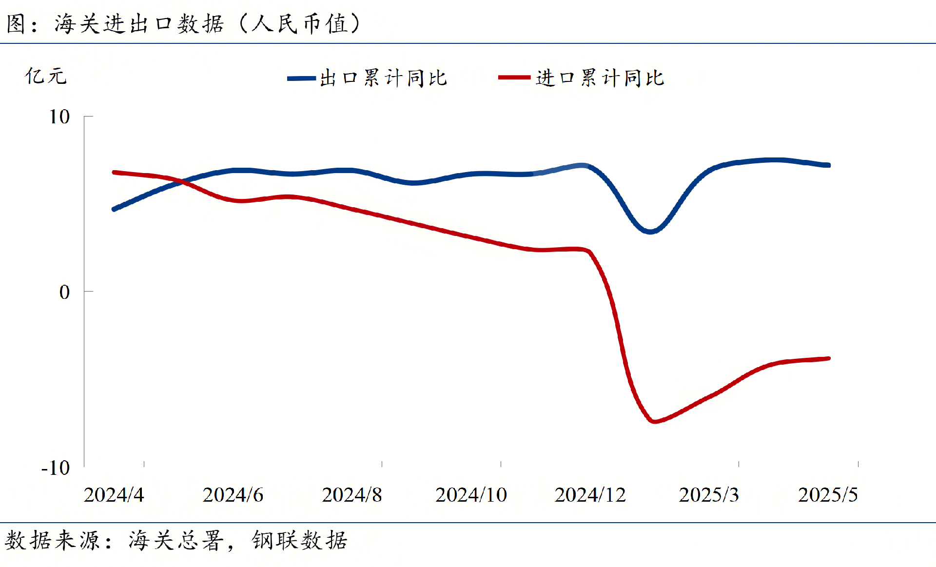 ◎ 海關(guān)總署:2025年5月中國(guó)出口鋼材1057.8萬(wàn)噸,環(huán)比增長(zhǎng)1.1%;1-5月累計(jì)出口鋼材4846.9萬(wàn)噸,同比增長(zhǎng)8.9%。