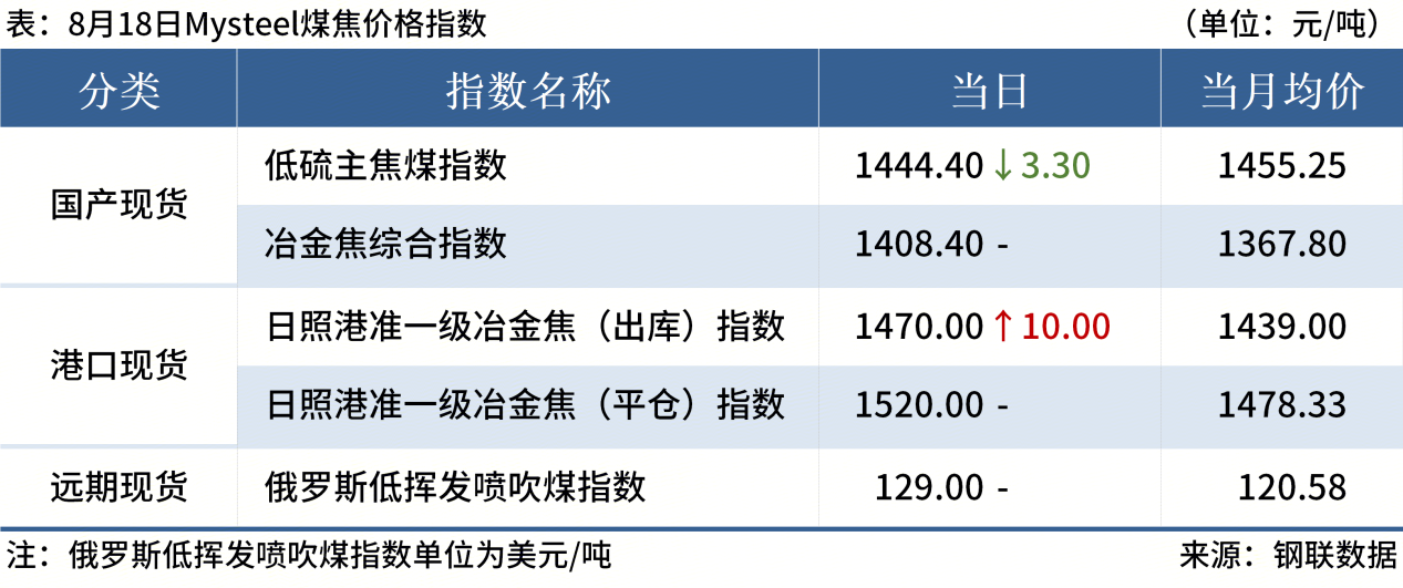 ◎ 8月18日,主流焦企對(duì)焦炭?jī)r(jià)格進(jìn)行第七輪提漲,搗固濕熄焦上調(diào)50元/噸,搗固干熄焦上調(diào)55元/噸,自8月19日0時(shí)起執(zhí)行。