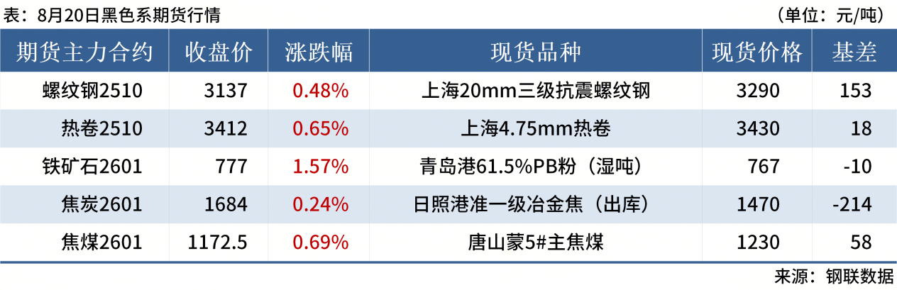 ◎ 8月20日,全國主港鐵礦石成交119.00萬噸,環(huán)比增3.5%;237家主流貿易商建筑鋼材成交10.22萬噸,環(huán)比增12.4%。