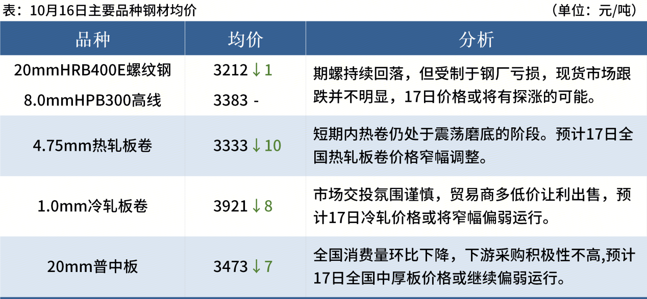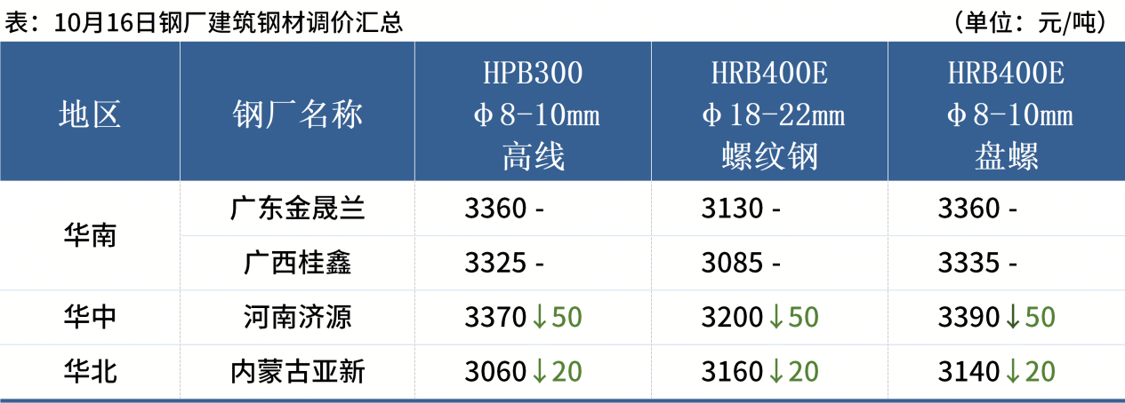◎ 10月16日,廣東中南鋼鐵股份有限公司、陽春新鋼鐵有限責(zé)任公司、珠?;浽XS鋼鐵有限公司發(fā)布關(guān)于限價銷售的通知。詳情>>