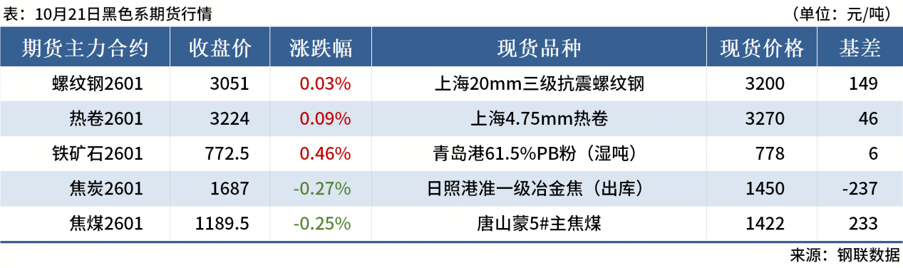 ◎10月21日,全國(guó)主港鐵礦石成交101.10萬(wàn)噸,環(huán)比增19.8%;237家主流貿(mào)易商建筑鋼材成交10.12萬(wàn)噸,環(huán)比增3.5%。